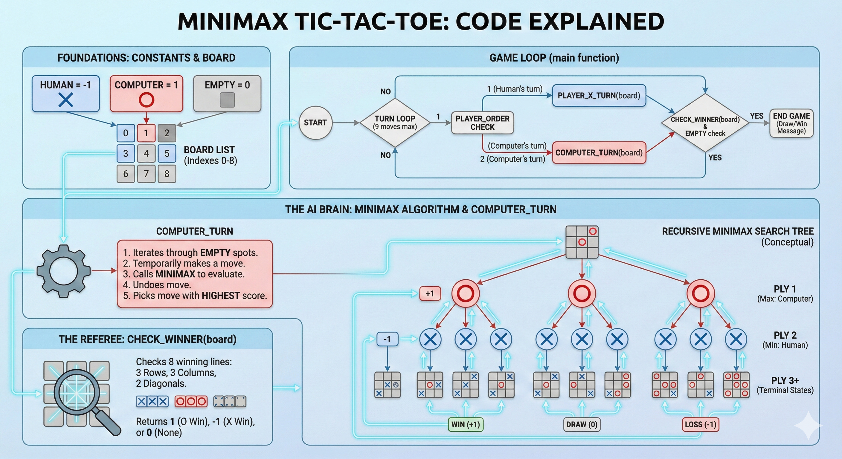 -1 if Human (X) wins